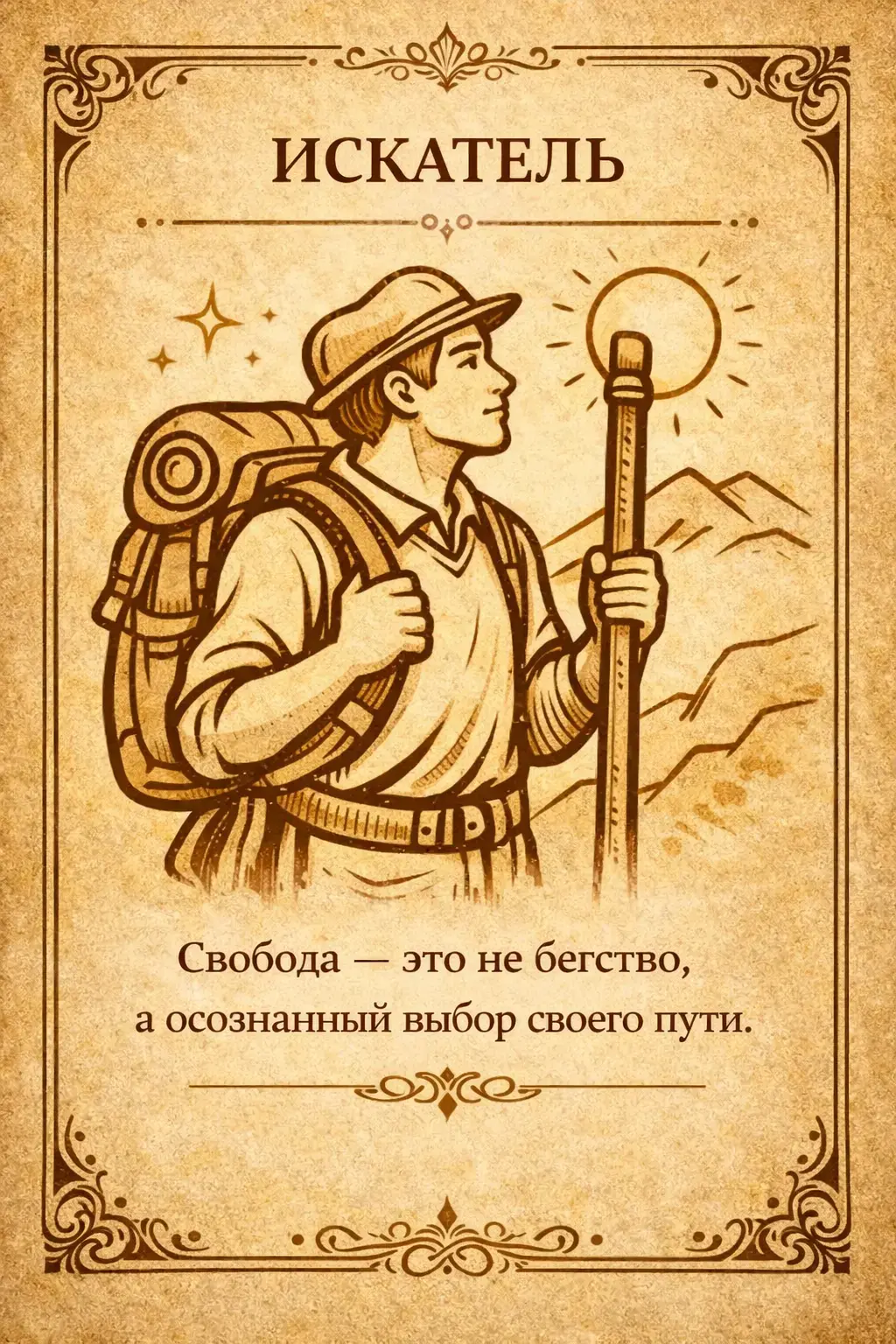 Искатель стремится к свободе, новым дорогам и возможностям.